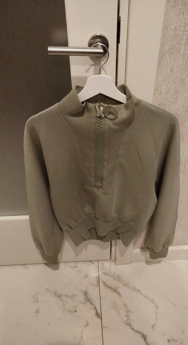 Gri renkte, yarım fermuarlı, yüksek yakalı ve uzun kollu kadın sweatshirt. Rahat kesimi ve yumuşak dokusuyla günlük ve sokak stiline uygundur. ♀️