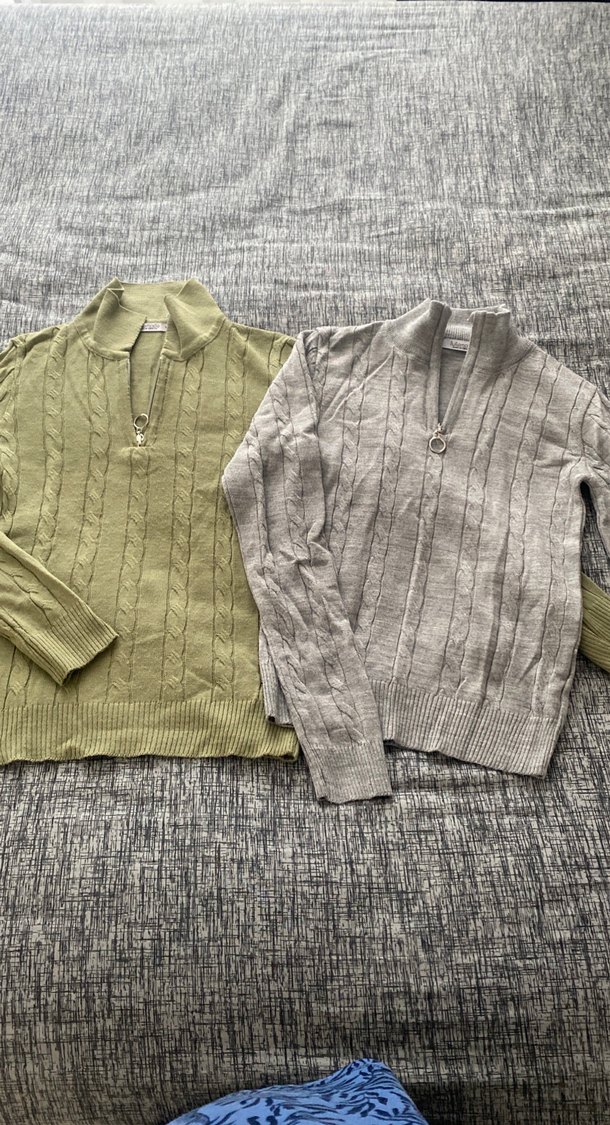 Gri renkli, yarım fermuarlı, uzun kollu, örgü kadın kazak. Rahat ve bol kesimiyle günlük kullanıma uygundur. Örgü dokusu ve yüksek yakasıyla sıcak tutar. Yeşil olanda hafif tüylenme var ikili fiyatı