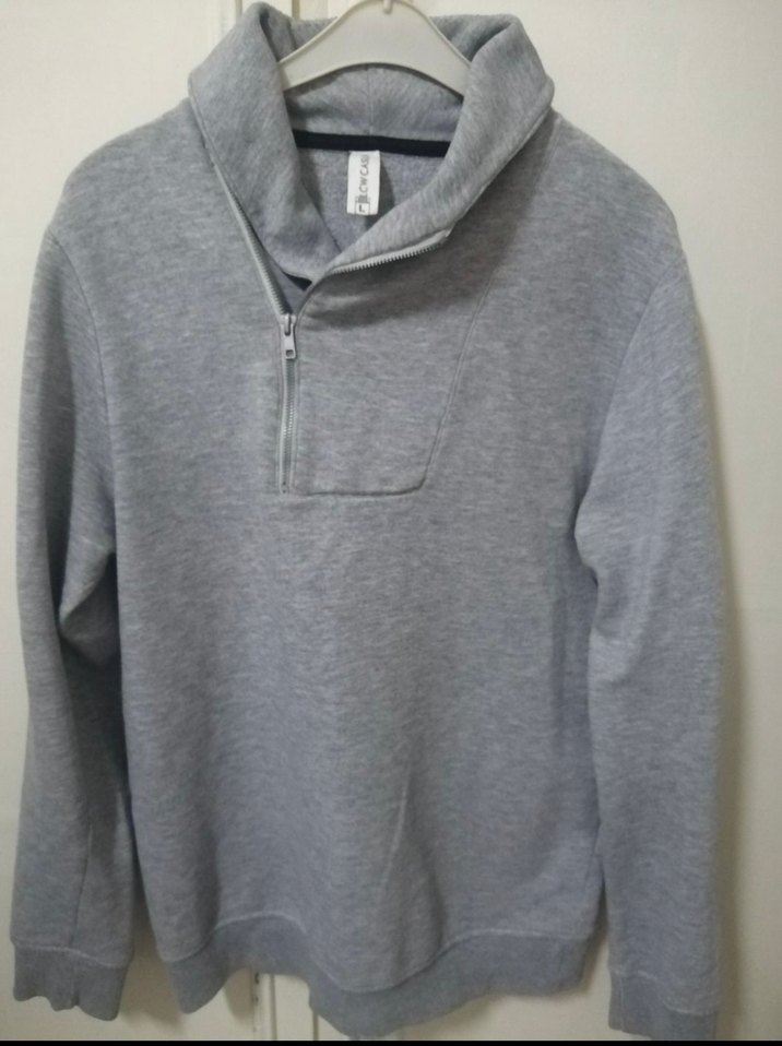 Gri renkli, yüksek yakalı ve yarım fermuarlı sweatshirt. Uzun kollu, bol kesim ve yumuşak, sıcak kumaştan üretilmiştir. Casual sokak stili için uygundur.