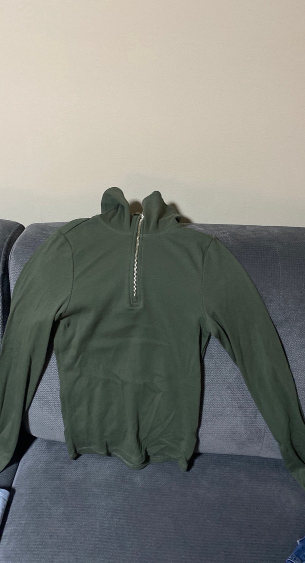 Gri renkte, yüksek yakalı ve yarım fermuarlı, uzun kollu, erkekler için ince kesim sweatshirt. Rahat ve sıcak dokusu günlük kullanıma uygundur.