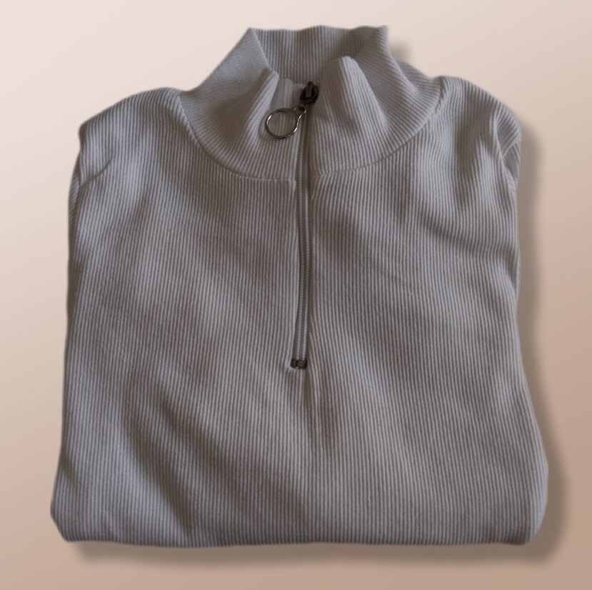 Beyaz Fermuarlı Yüksek Yakalı Kadın kazak