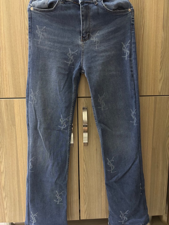 ince desenli logolu midi boy, regular fit denim pantolon. Günlük kullanıma uygun, rahat ve şık bir sokak tarzı sunar.