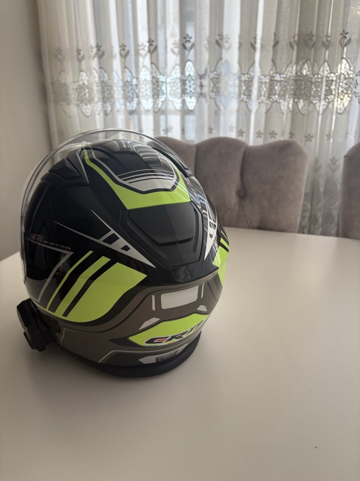 Gri-Yeşil Baskılı Motosiklet Kaskı Velcro