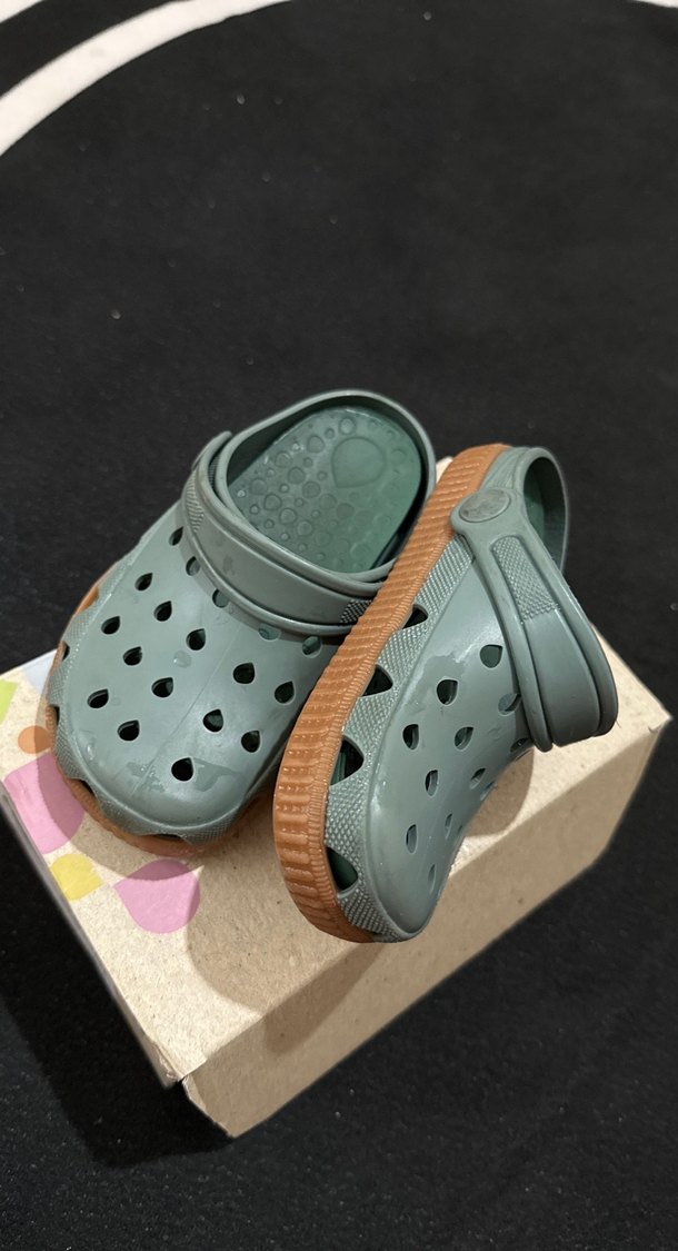 Gri/Yeşil renkte, tokalı ve delikli tasarıma sahip, rahat kauçuk tabanlı erkek çocuk terliği. Günlük ve normcore tarzı. İçindeki tabanlıkları çıkarınca 1 numara büyüyor 2 sene kullandı çocuğum. Tertemiz göründüğü gibi. Kutulu gönderilecek.