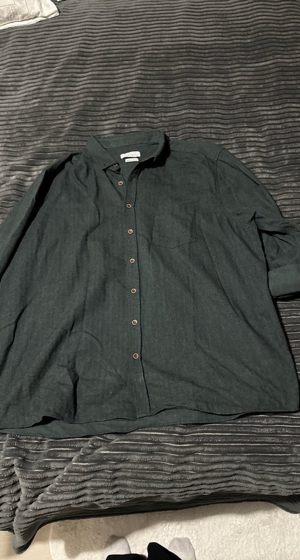 Gri renkli, keten kumaştan yapılmış, düğmeli ve uzun kollu erkek gömleği. Notlu yaka ve bol kesimiyle gündelik kullanıma uygundur.
