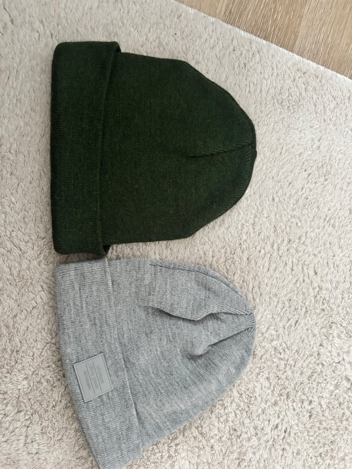 Gri örgü yün bere, yumuşak ve sıcak bir his sunar, sade ve temel tarzda sokak modası için uygundur. Yeşil gri ikili set