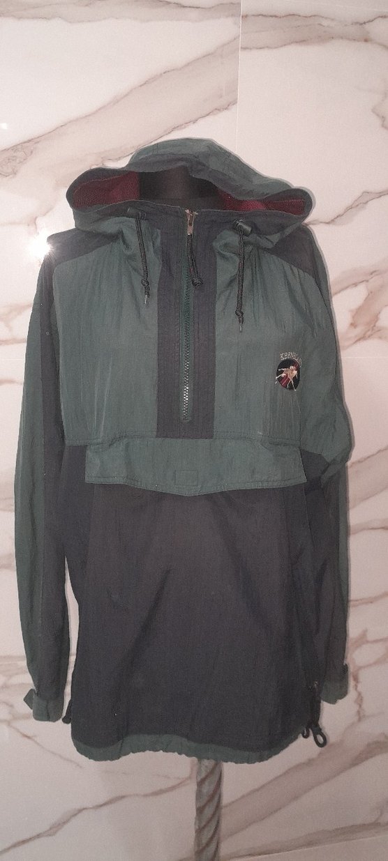 Gri -yeşil Kapüşonlu kadın Rüzgarlık