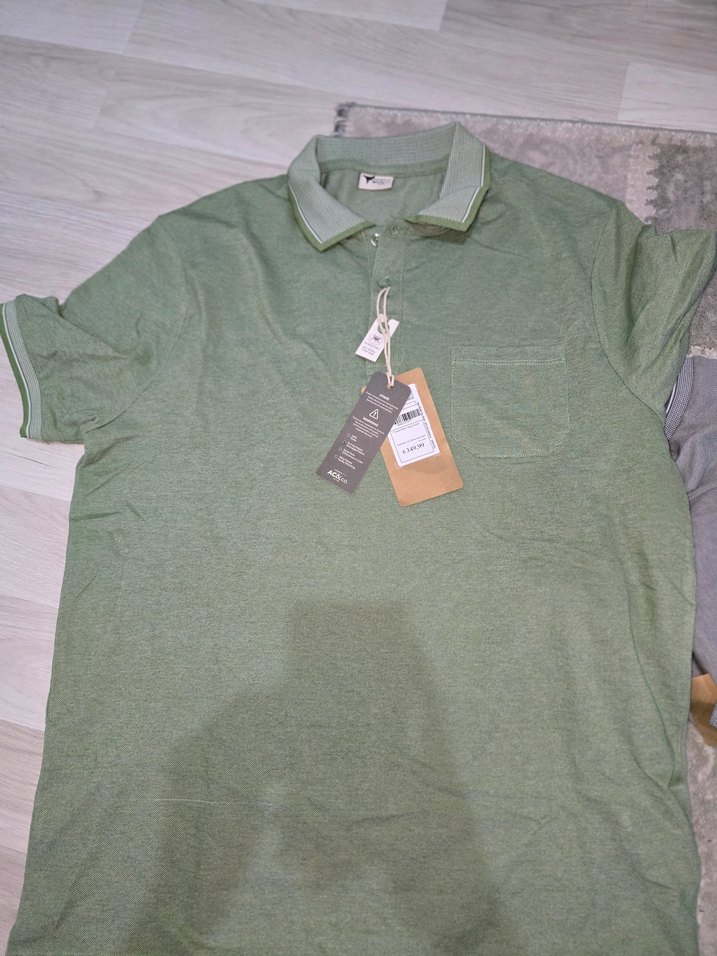 Gri-Yeşil Keten Polo Tişört