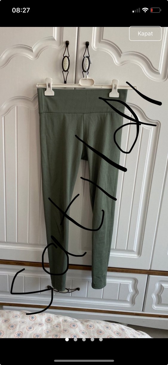 Satıldııııııı !!!!! Düz gri-yeşil tonlarda, sentetik kumaştan yapılmış, normal boyda ve dar kesim spor tayt. Sokak modası ve rahat athleisure tarzına uygun. Bir iki kez giyildi