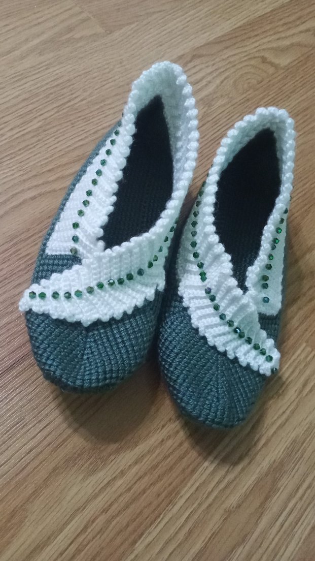 Gri-Yeşil Örgü Kadın Terlik