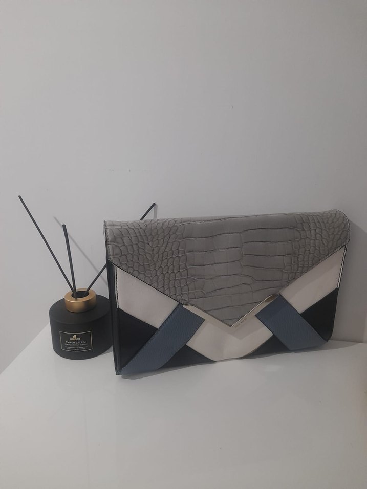 Gri Yılan Derisi Desenli Kadın Çanta