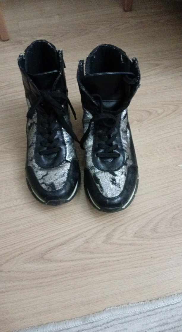 Gri Yılan Desenli Bağcıklı Stiletto Topuklu Spor Ayakkabı