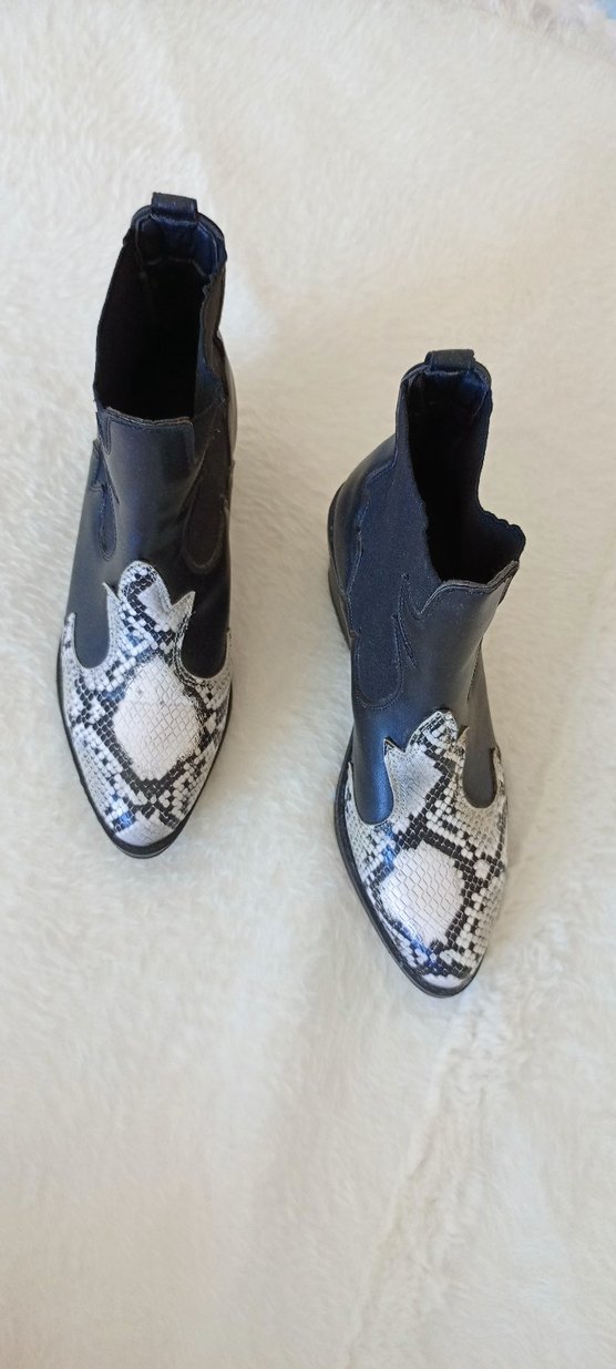 Gri yılan desenli, blok topuklu kadın botları. Kauçuk malzemeden, günlük sokak stiline uygun. ve sadece 1 kere kullanıldı tertemiz