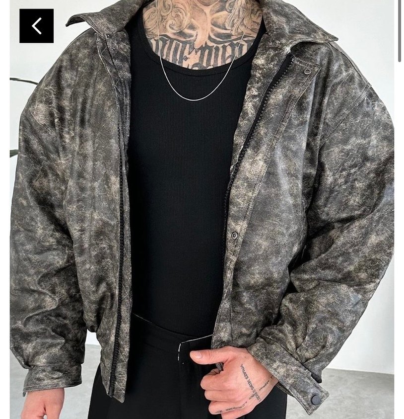 Gri yılan desenli deri erkek ceket, yakalı ve uzun kolludur. Bol kesim ve kemerli tasarıma sahiptir, günlük kullanıma uygundur. Marka temsilidir.