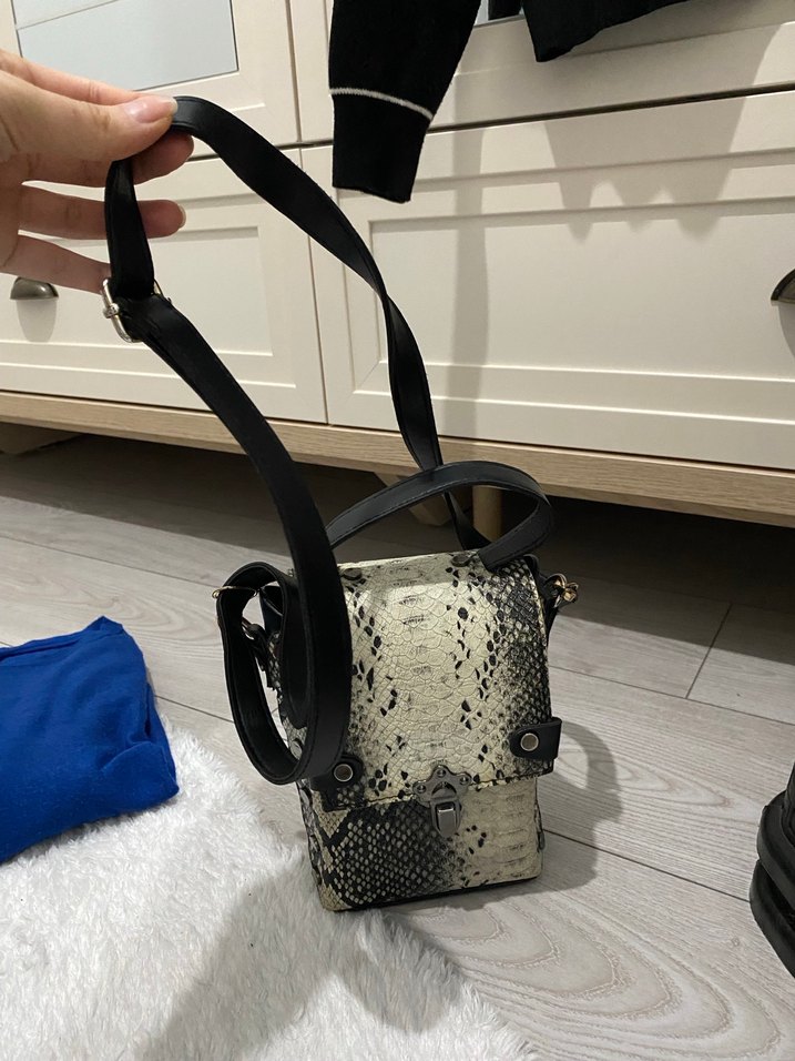 Gri Yılan Desenli Deri Kadın Çanta