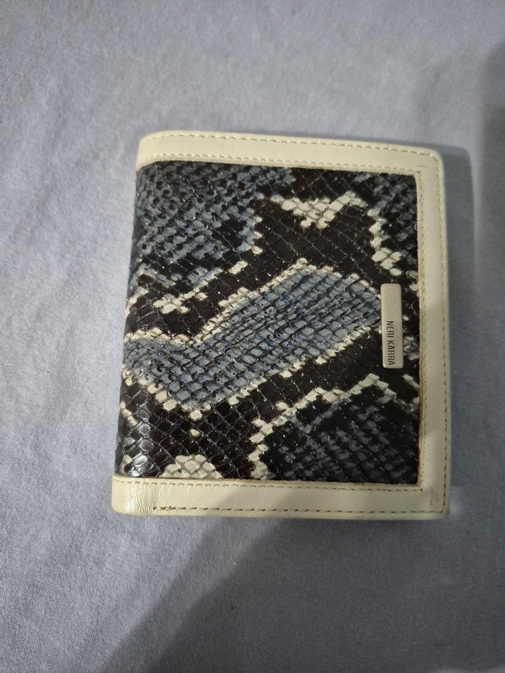 Gri yılan desenli deri kadın cüzdan, burslu ve çıtçıtlı kapanışa sahiptir. Günlük kullanım için uygun, vintage Paris tarzında bir aksesuardır. gerçek deridir