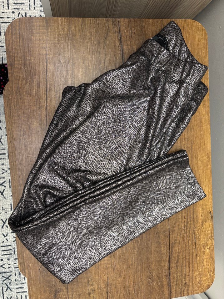 Gri yılan desenli deri malzemeden, kemerli ve bol kesim uzun kadın taytıdır. Sokak tarzına uygun, rahat ve şık bir tasarımdır.