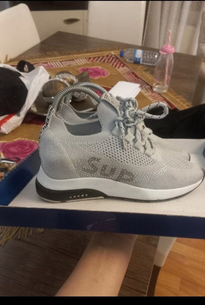 Gri Yılan Desenli Dolgu Topuk Kadın Spor Ayakkabı
