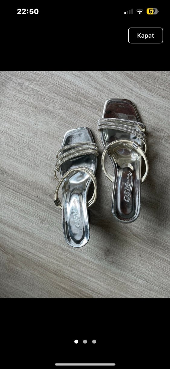 Gri yılan desenli, metal malzemeden dolgu topuklu, tokalı kadın ayakkabısı, minimalist ve çağdaş tarz için uygundur. Sadece 1 kere giyildi
