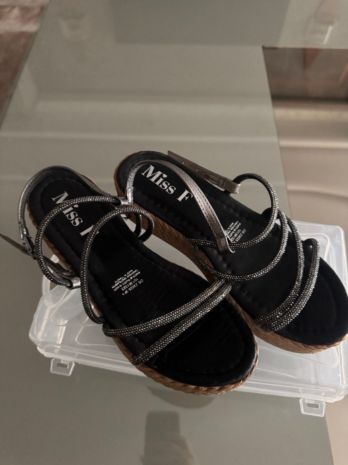 Gri yılan desenli dolgu topuklu, tokalı kayışlara sahip kadın sandalet, günlük kullanıma uygun modern ve minimalist tarz sunar. Bir kere giyildi