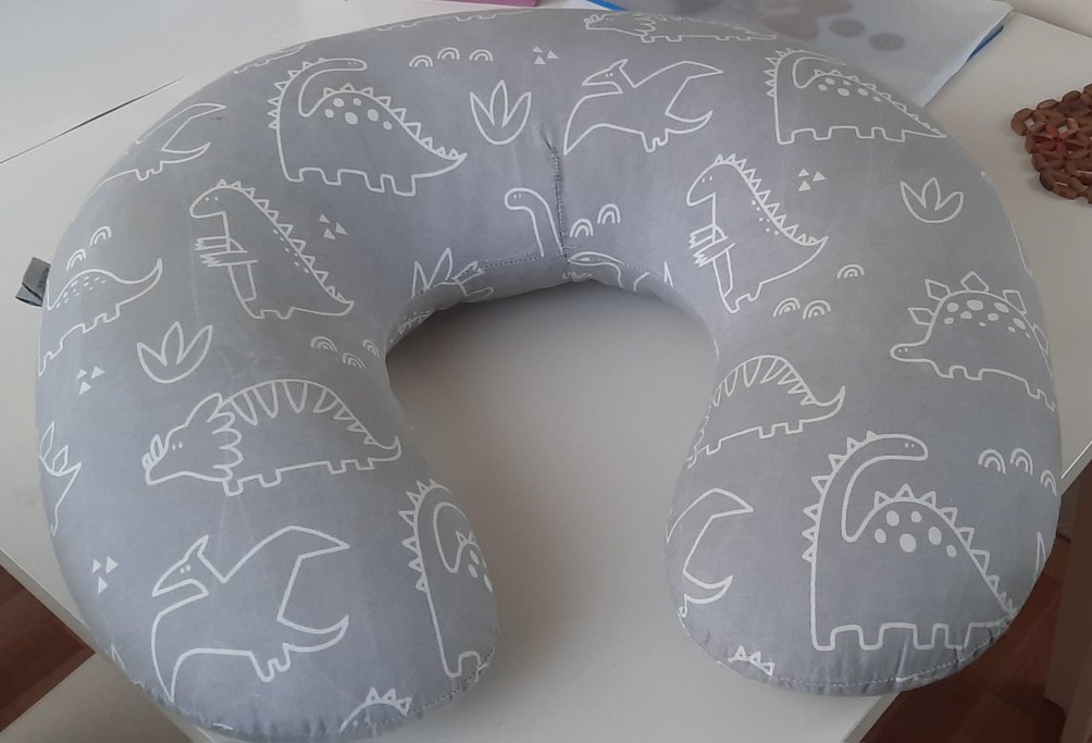 Gri renkli, desenli hamilelik ve emzirme yastığı, destek ve rahatlık sağlar. iç singerinde sorun yok sadece kilifinda yirtilma vardi dikilmistir.resimlerde eklidir.