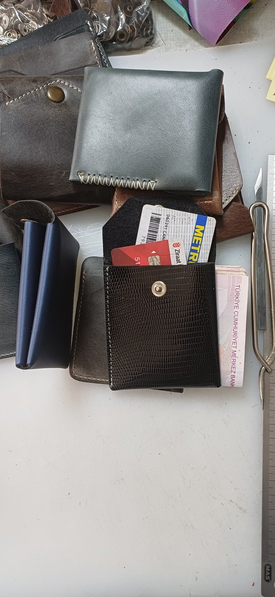 siyah yılan desenli erkek cüzdanı, çoklu kart bölmeleri ve çıtçıtlı kapanışa sahiptir.