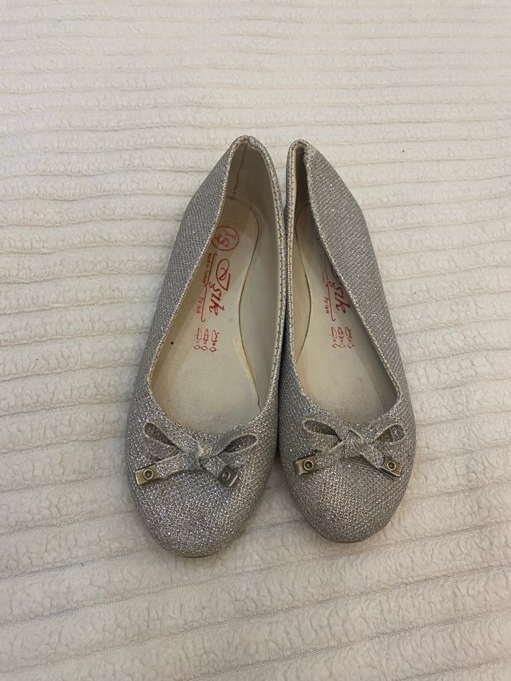 Gri yılan desenli, fiyonk detaylı kız babetleri. Esnek kauçuk malzemeden, modern klasik tarzda.