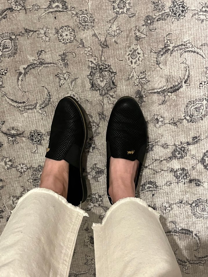 Yılan desenli gri espadriller, blok topuk ve kürk detaylı, rahat tabanlı, sokak stiline uygun.