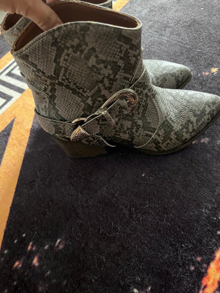 Gri Yılan Desenli Kadın Deri Bot