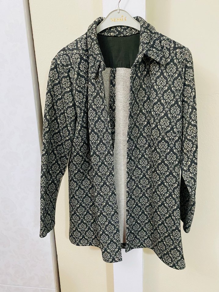 Bu kadın ceketi uzun kollu, yaka kısmı kesimli ve düğmeli olarak tasarlanmıştır. Gri yılan desenli, sentetik kumaştan yapılmış midi boyda rahat kesim bir modeldir. Rahat ve şık günlük sokak stili için uygundur.