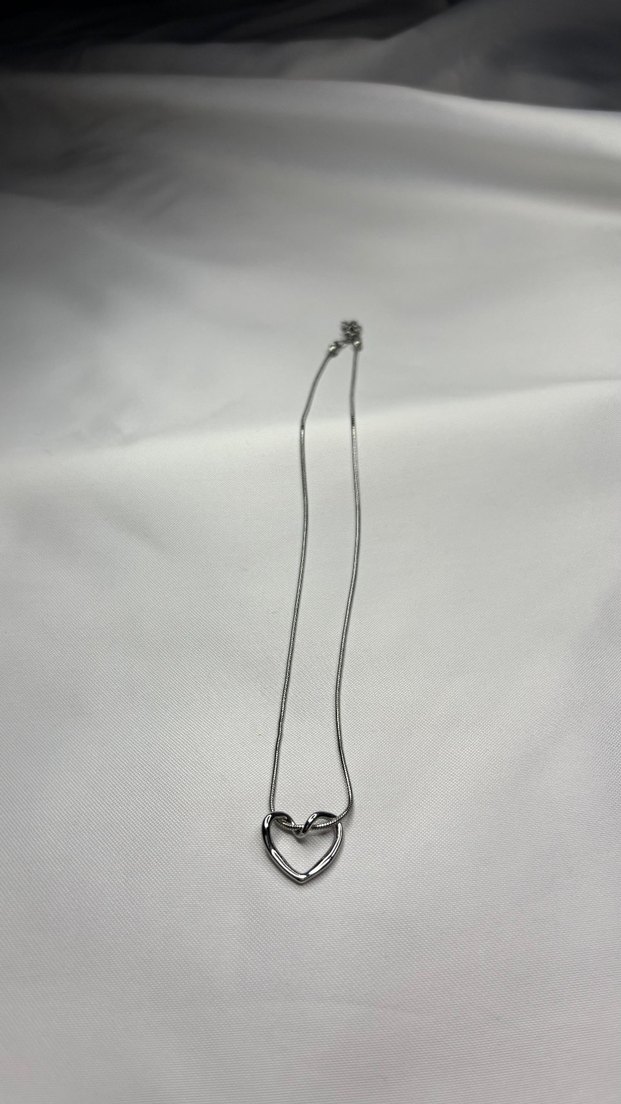 Gri yılan desenli kalp şeklinde uçlu, zincir detaylı, çağdaş ve minimalist stil kolye, romantik akşamlar için uygundur.