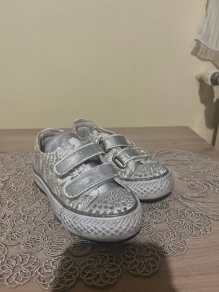 Gri yılan desenli, tokalı ve kauçuk tabanlı kız spor ayakkabısı, sokak stiline uygun.