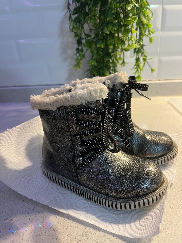 Gri Yılan Desenli Kürklü Kız Botları