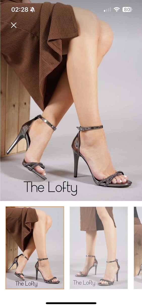 Gri yılan desenli metal stiletto topuklu, tokalı akşam ayakkabısı, romantik buluşmalar için ideal. Marka: The Lofty. Birkaç kere giydim ama bana çok yüksek geliyor kullanamıyorum 10 12 cm falan yüksekliği