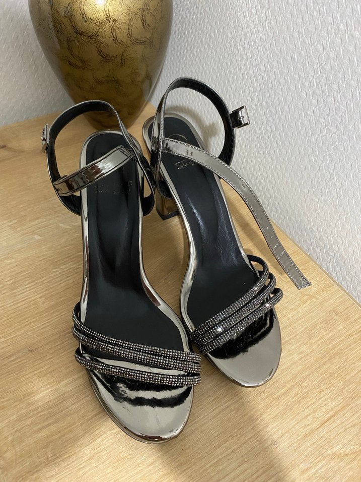 Gri Yılan Desenli Metal Topuklu Kadın Ayakkabı
