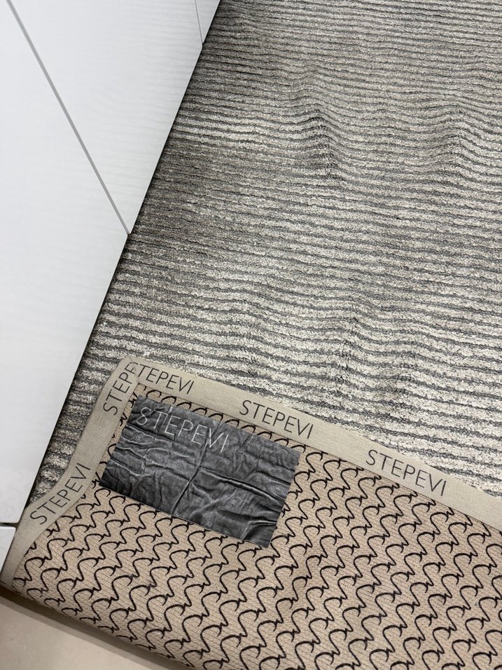 Gri renkte, yılan desenli modern tarzda, yumuşak dokulu bir halıdır.özel kesimdir 1 en 3 metre boyu mutfak halısı