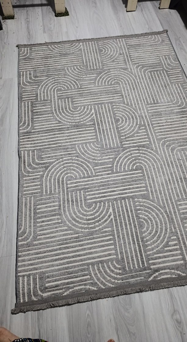 Gri yılan desenli, geometrik çizgilerle modern bir tarz sunan çağdaş halı. 120/180