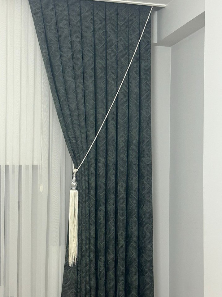 Gri renkte, yılan desenli modern klasik tarzda perde, mekâna şık ve zarif bir görünüm kazandırır.