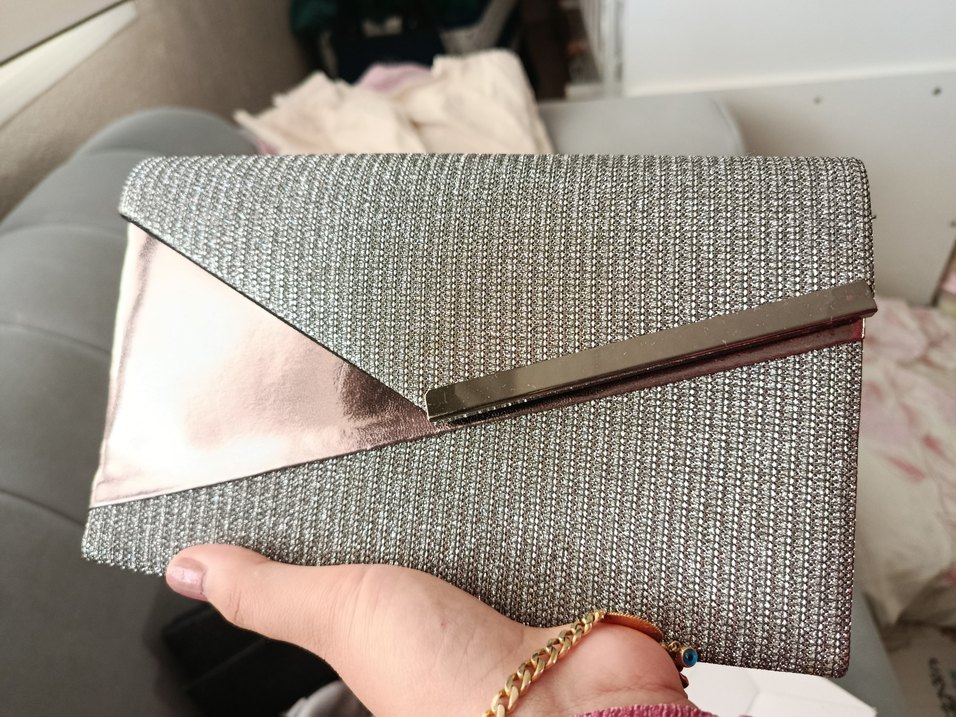 Gri Yılan Desenli Parlak Kadın El catnasi