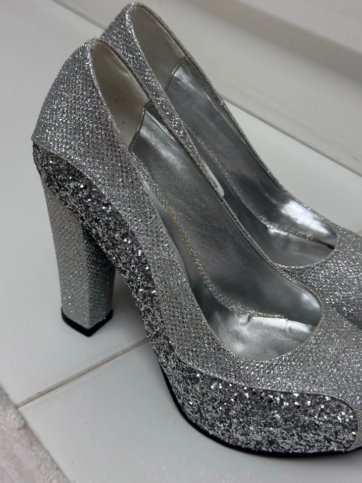 Gri yılan desenli, simli ve metal detaylı yüksek topuklu kadın ayakkabısı. Düğün ve özel geceler için uygun YENİ SIFIR AYAĞIMA DAR OLDUĞU İÇİN HİÇ GİYMEDİM ✨