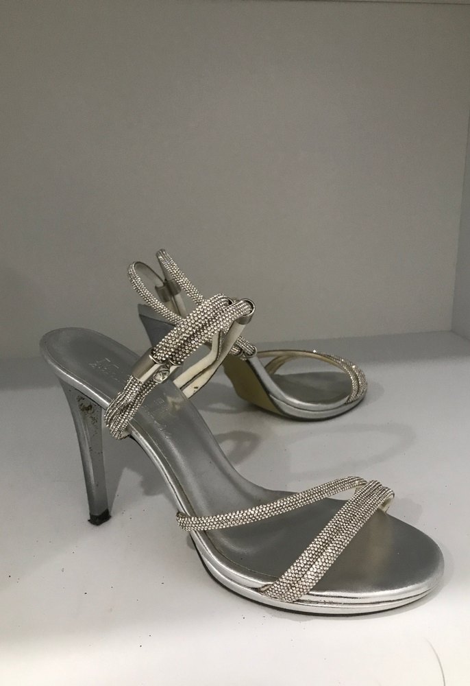 Gri yılan desenli ve metal görünümlü stiletto abiye ayakkabılar. Tokalı bantlarıyla düğün ve özel günlere uygundur. 1 defa kullanıldı. Bant kısmının çok farklı bi tarzı var kesinlikle tavsiye ediyorum :)))