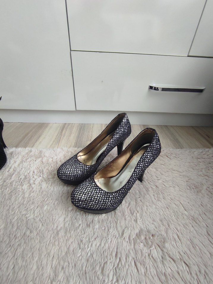 Gri yılan desenli, dantel detaylı ve kauçuk malzemeden yapılmış stiletto topuklu kadın ayakkabıları. Düğünler için çağdaş tarzda.