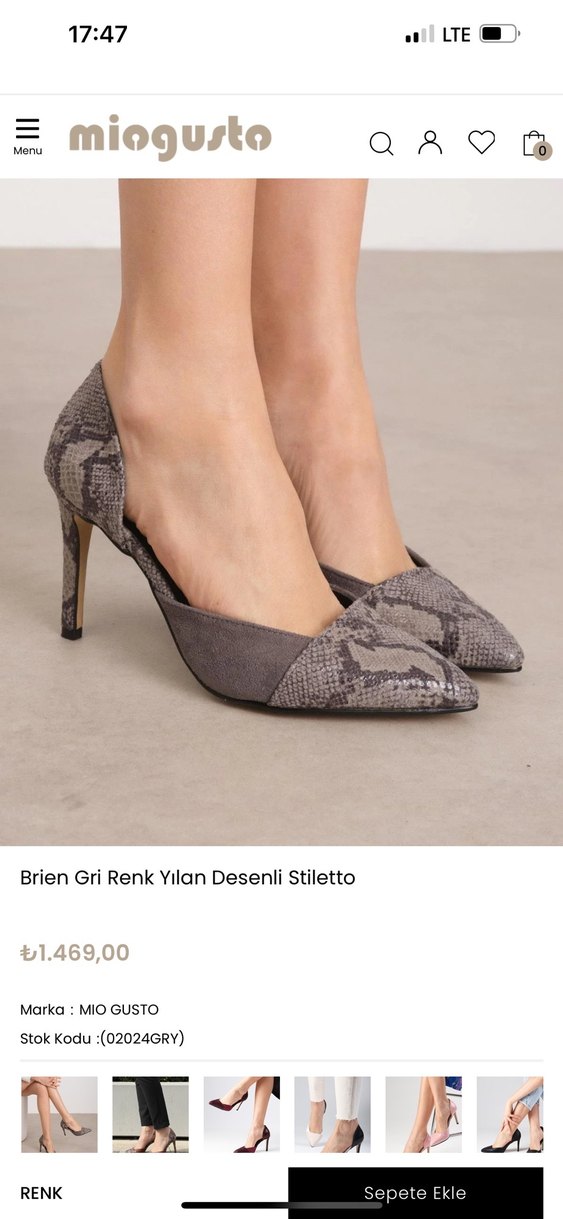 Gri yılan desenli süet stiletto topuklu ayakkabı, deri detaylı, ofis için şık ve klasik bir seçim. Orjinal kutusunda gönderilecek sıfır etiketli ürün çok ağır şık ayakkabı