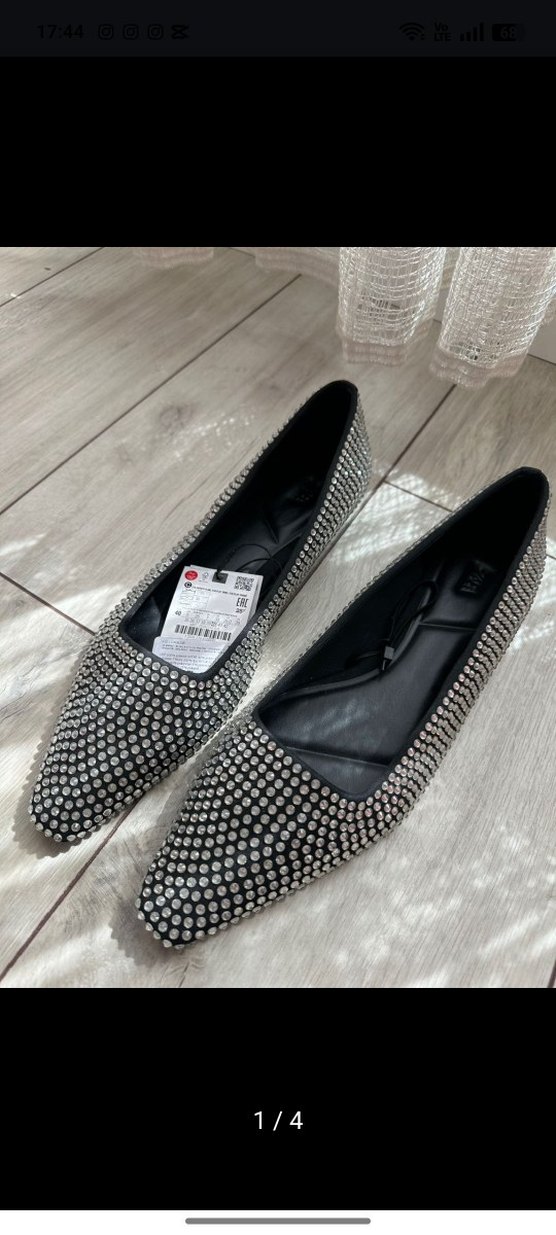 Gri Yılan Desenli Taş İşlemeli Topuklu Kadın Babet zara