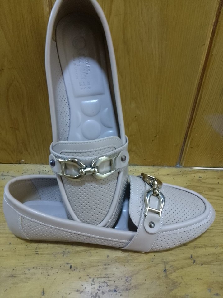 Gri Yılan Desenli Tokalı Kadın Babet
