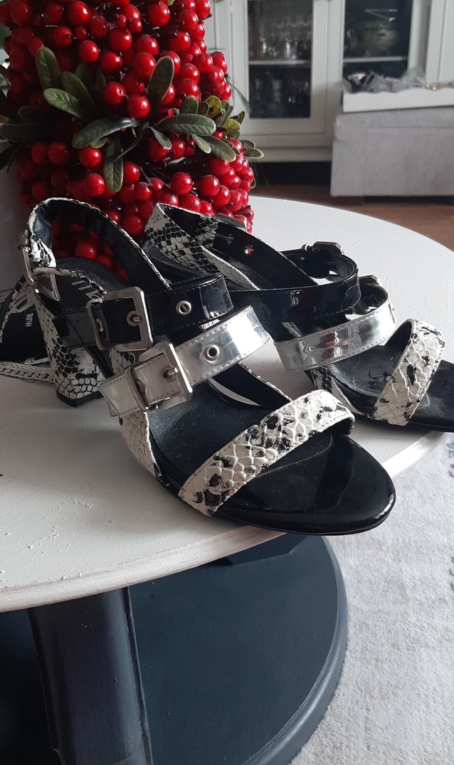Gri yılan desenli tokalı kayışlara sahip, kauçuk malzemeden yapılmış yüksek topuklu kadın ayakkabısı. Romantik akşamlar için uygundur. resimde belirttim bir tansinin ici soyulmus ama boyanirsa kapanir 3 yada 4 kez gilmiatir gayet yeni