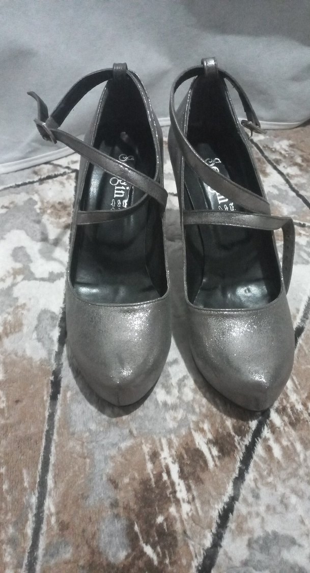 Gri Yılan Desenli Topuklu Kadın Ayakkabı
