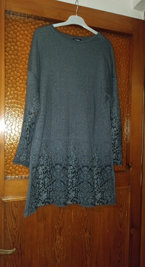 Gri renkli, yılan desenli, uzun kollu triko tunik. Bol kesimi ve yuvarlak yaka detayı ile rahat ve bohem bir tarz sunar. LC Waikiki marka kullanıldı ama temiz yeni