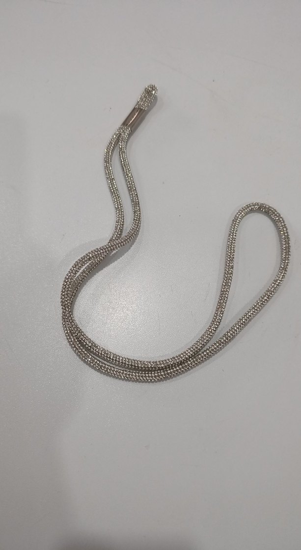 Gri renkte, yılan desenli detaylı zincirden oluşan uzun kolye, günlük kullanıma uygun çağdaş minimalist bir tarza sahiptir.