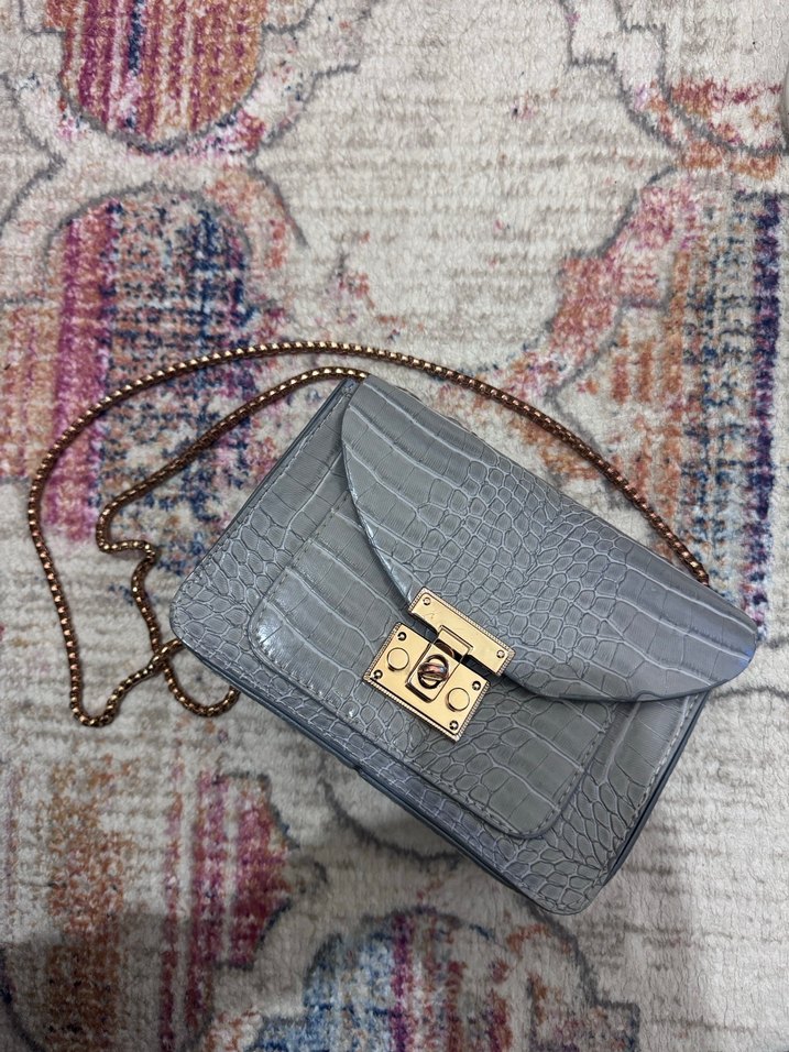 Gri Yılan Desenli Zincir Detaylı Deri Kadın Çanta